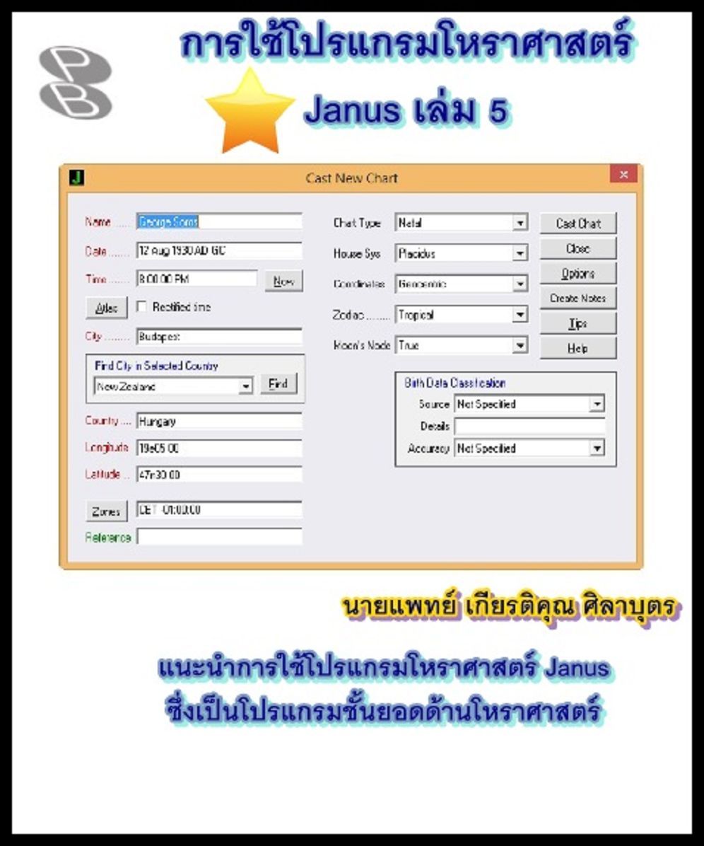 แนะนำการใช้โปรแกรมโหราศาสตร์ Janus ซึ่งเป็นโปรแกรมชั้นยอดด้านโหราศาสตร์